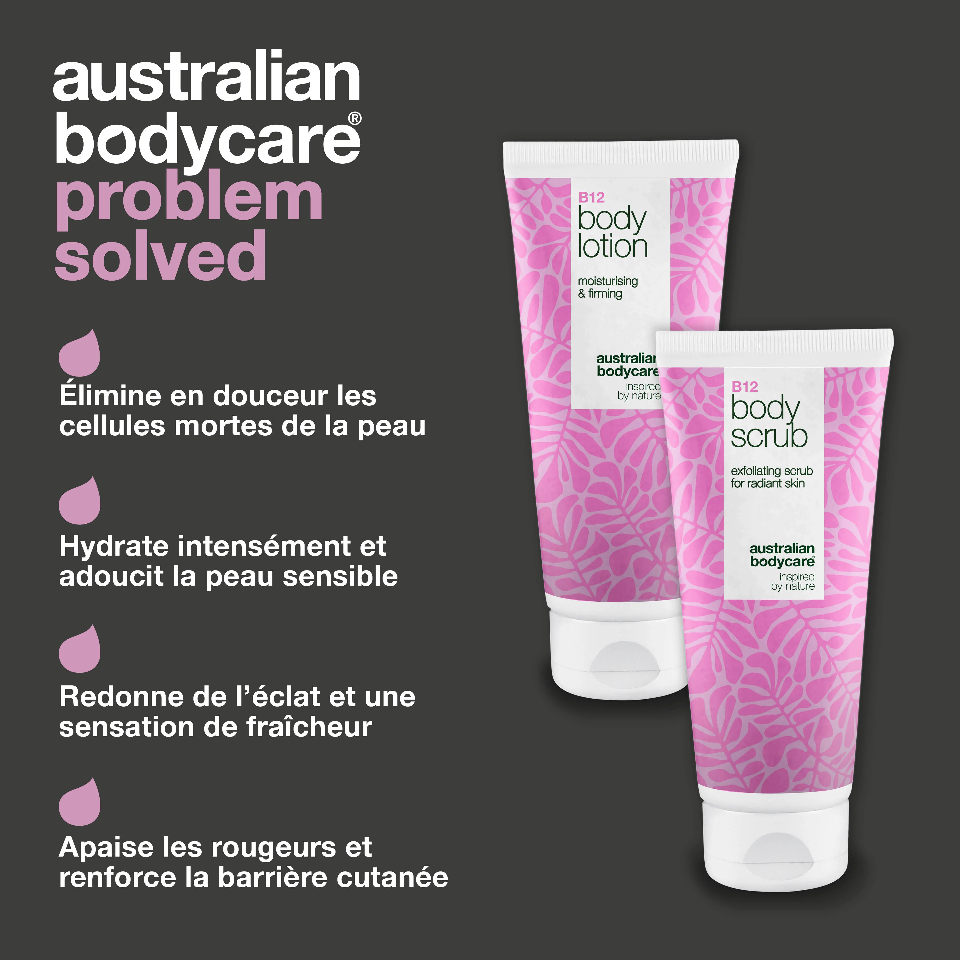 Avec plus de 30 ans d’expertise, Australian Bodycare est une marque de référence en matière de soins ciblés formulés avec des ingrédients naturels. Essayez notre coffret B12 pour le corps dès aujourd’hui – nous offrons toujours une garantie de satisfaction à 100 %, pour que vous puissiez constater les résultats par vous-même.