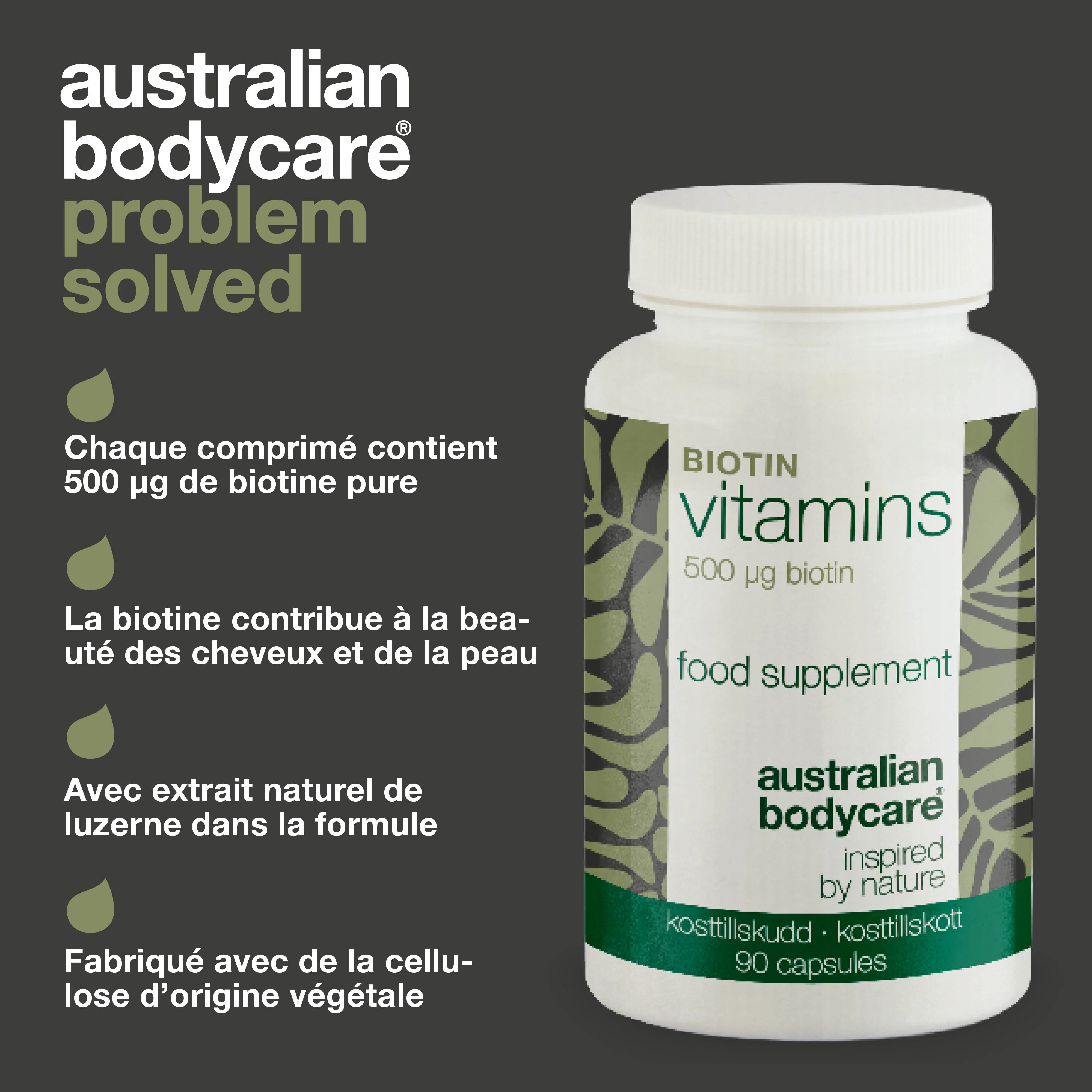 Chaque comprimé contient 500 µg de biotine, soit 1 000 % des Apports de Référence (AR).