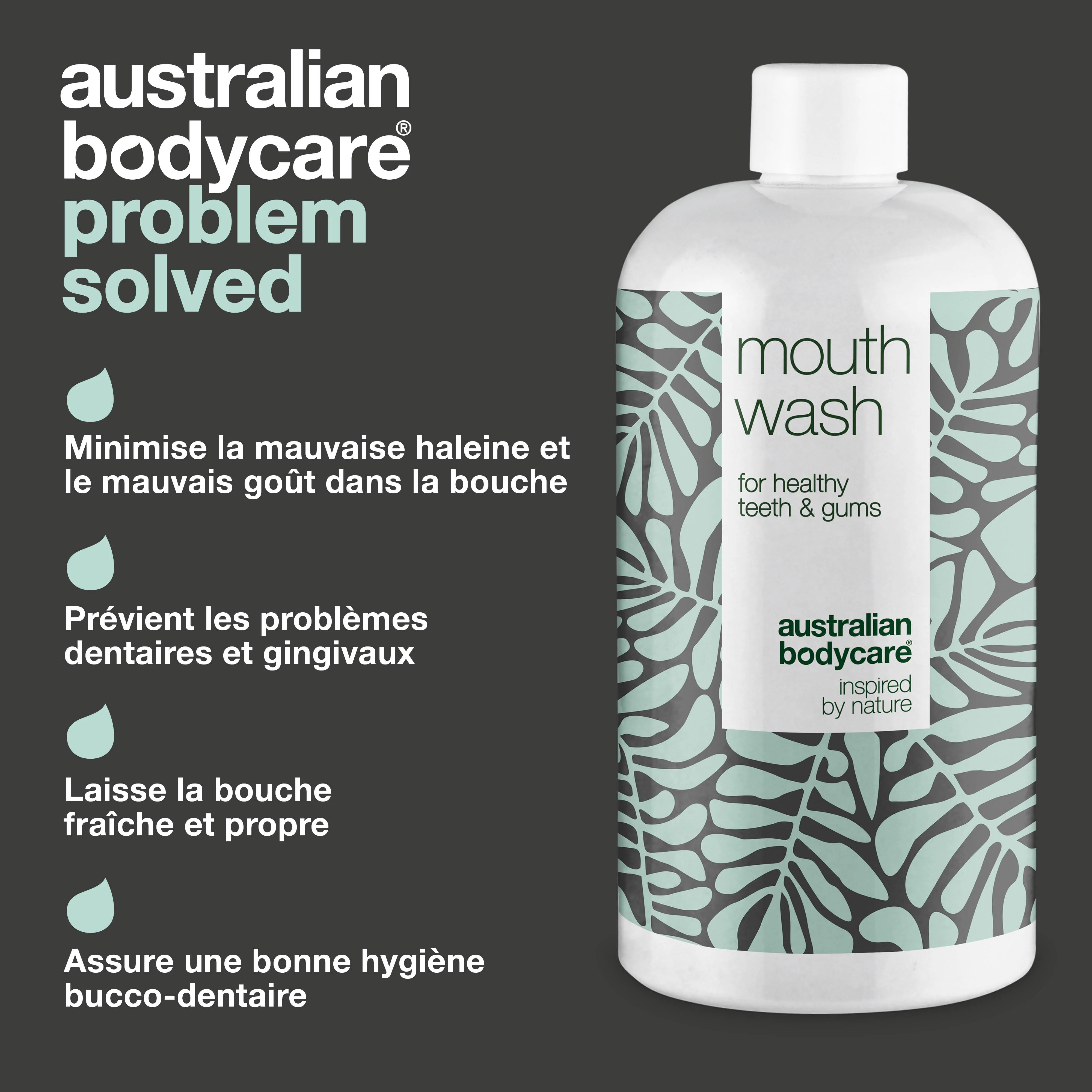 Êtes-vous aux prises avec des problèmes de gencives douloureuses ou une mauvaise haleine ? Le bain de bouche à l'huile de tea tree neutralise les bactéries et assure une bonne hygiène bucco-dentaire | Le bain de bouche soigne et soulage les gencives douloureuses et saignantes et peut être utilisé pour les soins quotidiens de la parodontite et de la candidose buccal | Laisse une sensation de fraîcheur et de propreté dans la bouche.
