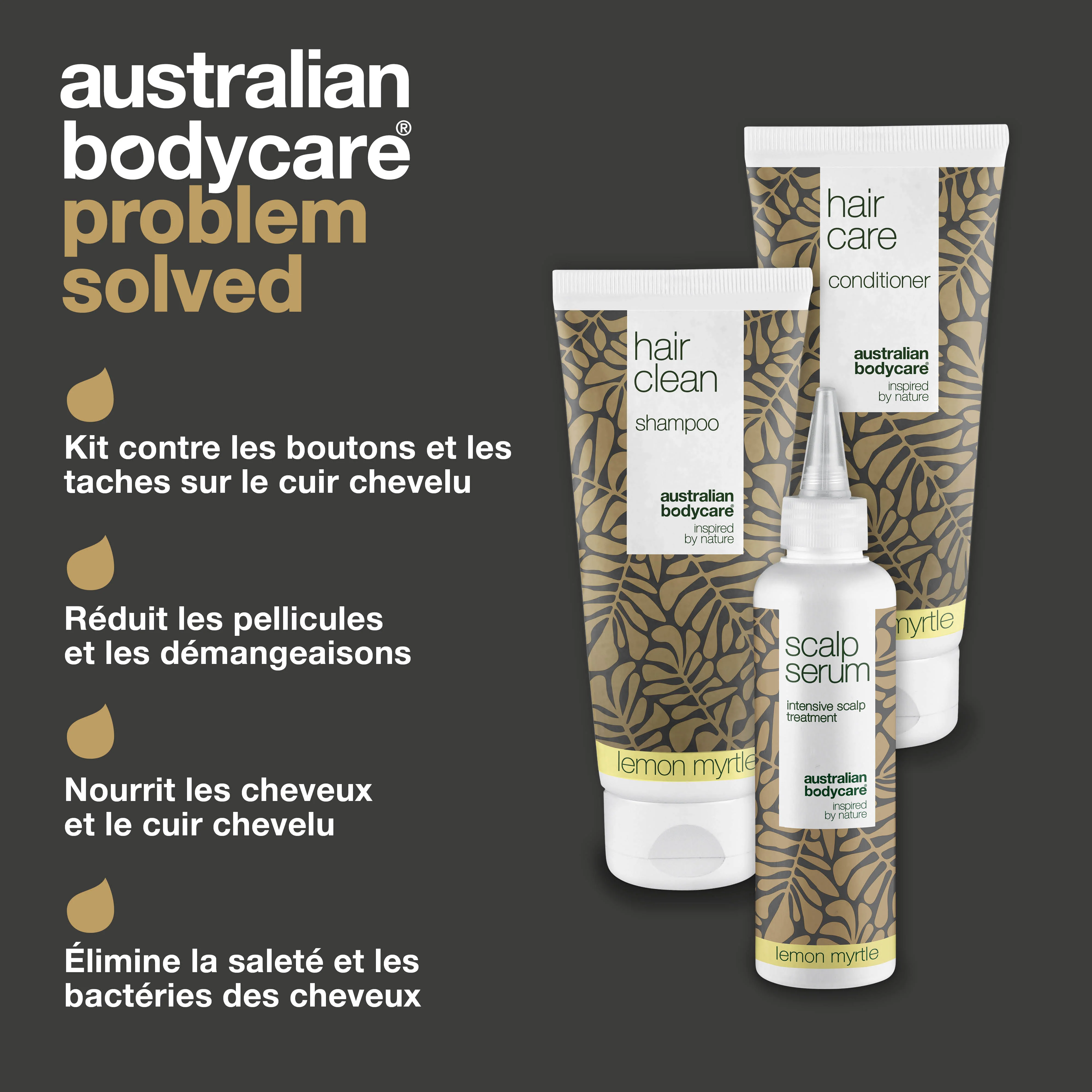 Le shampooing, l'aprĂšs-shampooing et le traitement du cuir chevelu soignent et soulagent le cuir chevelu sec et douloureux, les dĂ©mangeaisons et les pellicules | L'huile de tea tree combat les bactĂ©ries et les dĂ©mangeaisons | Le myrte citronnĂ© hydrate et fait briller les cheveux | Peut ĂȘtre utilisĂ©e pour les boutons sur le cuir chevelu | Pour les hommes et les femmes et tous les types de peau et de cheveux | Vegan et testĂ© sous contrĂŽle dermatologique.