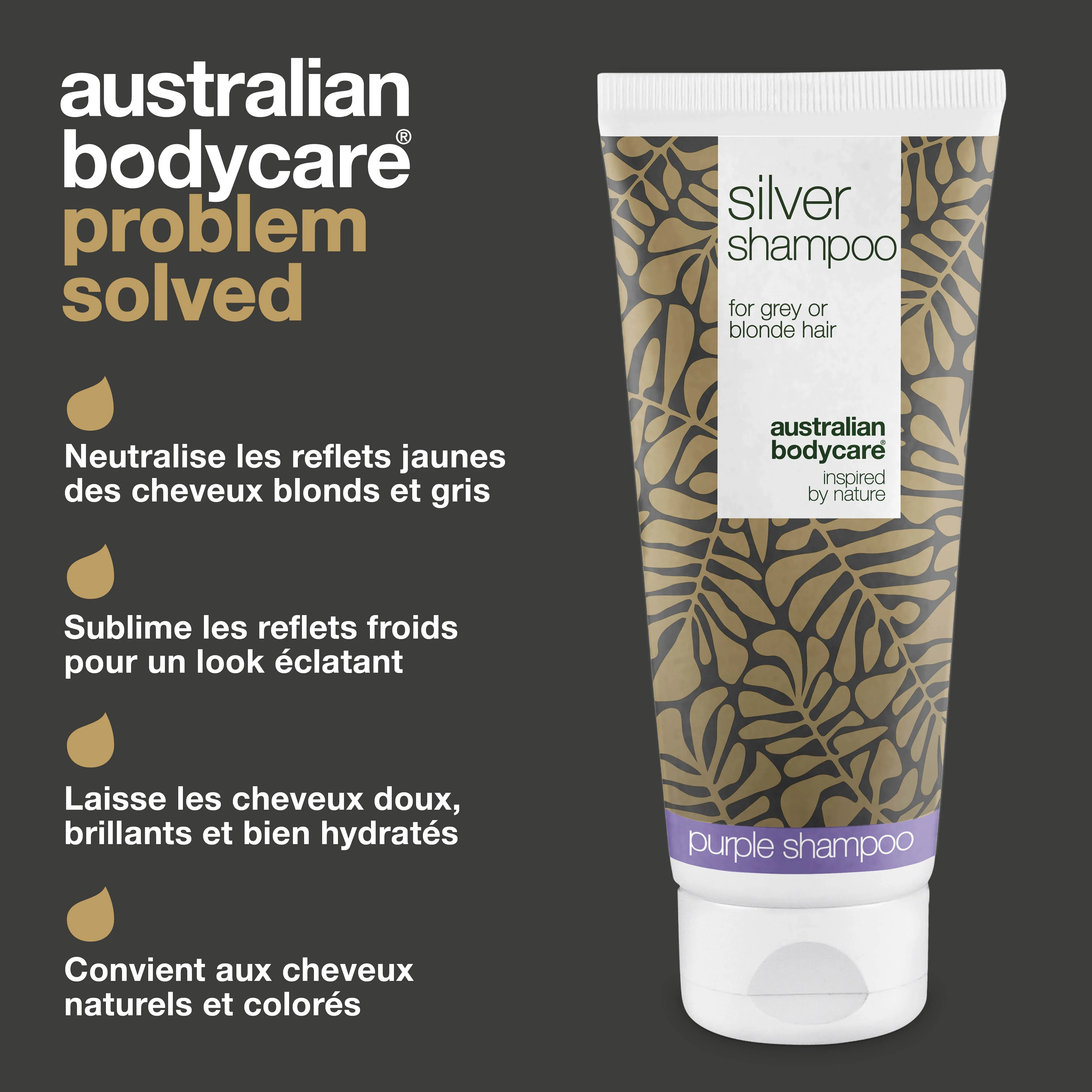"Notre silver shampoo a été conçu pour résoudre l’un des problèmes les plus fréquents des cheveux blonds et gris : les reflets jaunes indésirables. Inspiré par la nature, nous avons combiné des pigments violets puissants avec des ingrédients apaisants et nourrissants, pour offrir un shampooing qui donne des résultats visibles dès la première utilisation. Vos cheveux seront plus sains, plus frais et plus éclatants."